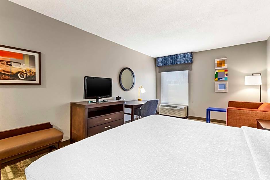The Hampton Inn Mebane offers a variety of room types. These include Double Rooms with Two Double Beds, King Rooms with Sofa Beds, King Rooms without a sofa bed, and King Rooms with a bath tub that are accessible for guests with mobility or hearing impairments. None of the rooms allow smoking. The rooms can accommodate different numbers of adults and children, with bed sizes ranging from Double beds to King size beds.