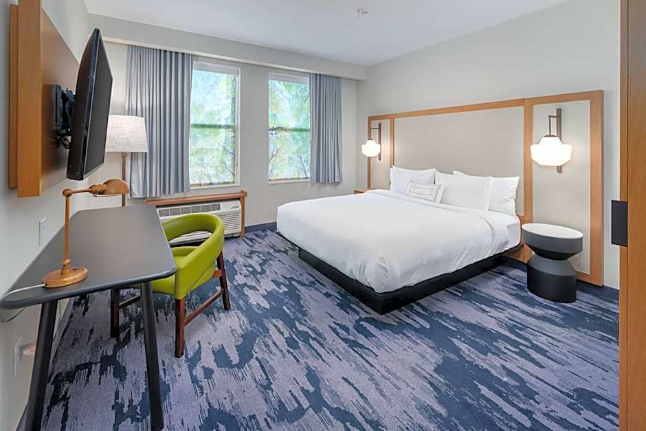 Fairfield Inn & Suites Morganton Historic Downtown offers several types of rooms. These include: Guest rooms with 2 Queen beds that can accommodate 4 adults and 3 children, Guest rooms with 1 King bed that can accommodate 2 adults and 1 child, Suites with 1 King bed and a Sofa bed that can accommodate 3 adults and 2 children, and Suites with 2 Queen beds and a Sofa bed that can accommodate 5 adults and 4 children. All rooms have a size of 301 sqft and are non-smoking.