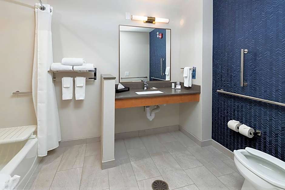 The Fairfield Inn & Suites Morganton Historic Downtown provides a range of amenities to ensure a memorable stay. Wake up to a delicious breakfast, provided by the hotel. Take a dip in the outdoor swimming pool or relax on the sun deck while enjoying the beach umbrellas and loungers. Stay connected with complimentary WiFi and make use of the on-site business center. Fitness enthusiasts can keep in shape at the fitness center, and pet owners can bring their furry friends along, with extra charges.