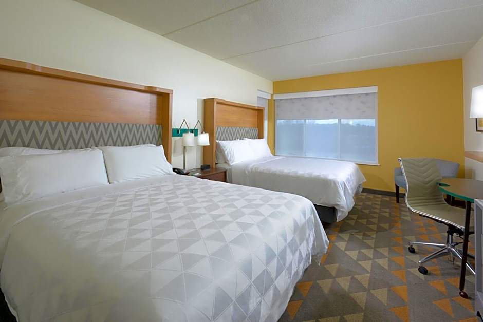The Holiday Inn Raleigh Durham Airport offers a variety of room types, including King Rooms, Queen Rooms with Two Queen Beds, and Standard Rooms. The rooms range in occupancy from single to double, accommodating up to 4 adults and 3 children in the Queen Room with Two Queen Beds. Smoking is not allowed in any of the rooms, and bed sizes include King, Queen, and Double beds. Room sizes are consistent at 323 sqft for most room types. Some rooms are also designated as accessible with features like roll-in showers and hearing/mobility accessibility.