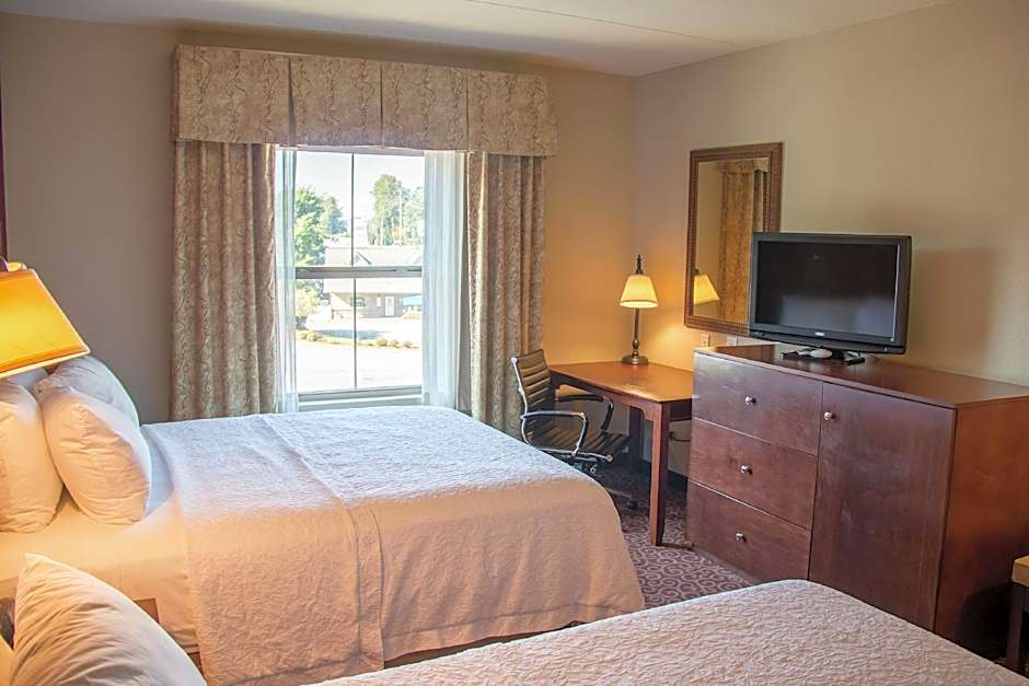 Work area, free WiFi, tea/coffeemaker Have a relaxing stay in this queen room that features 2 clean and fresh Hampton beds®. Watch your favorite show on TV while enjoying a delicious hot drink from your in-room tea/coffeemaker. The room includes a spacious work desk and free WiFi to let you catch up on work while traveling. In the bathroom you'll enjoy fluffy towels, a WaterPik showerhead and curved shower rod for added space and light.