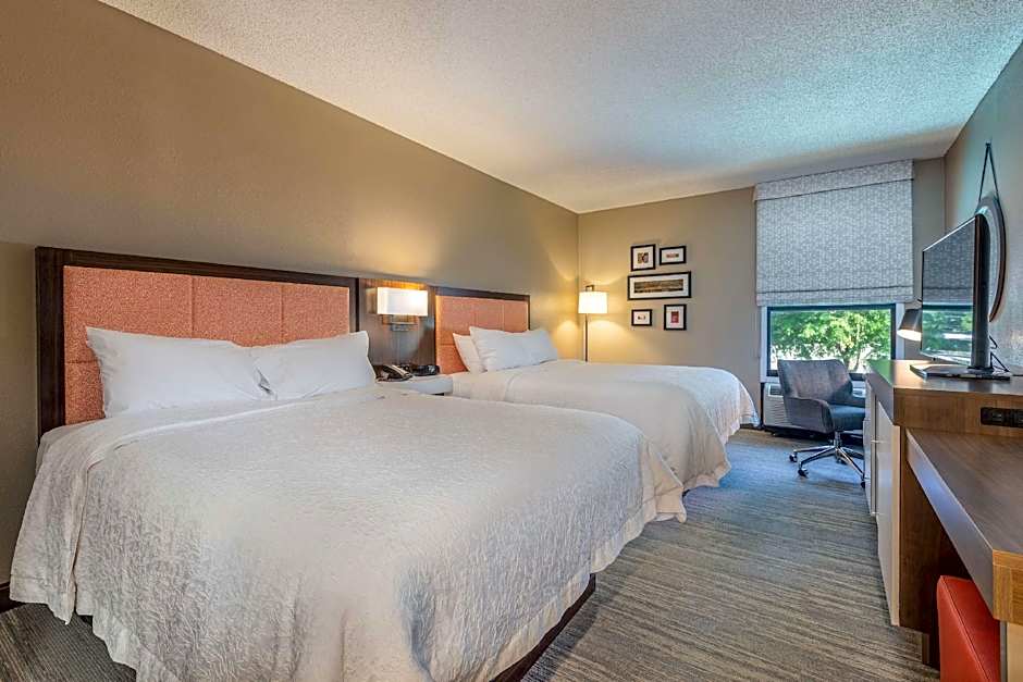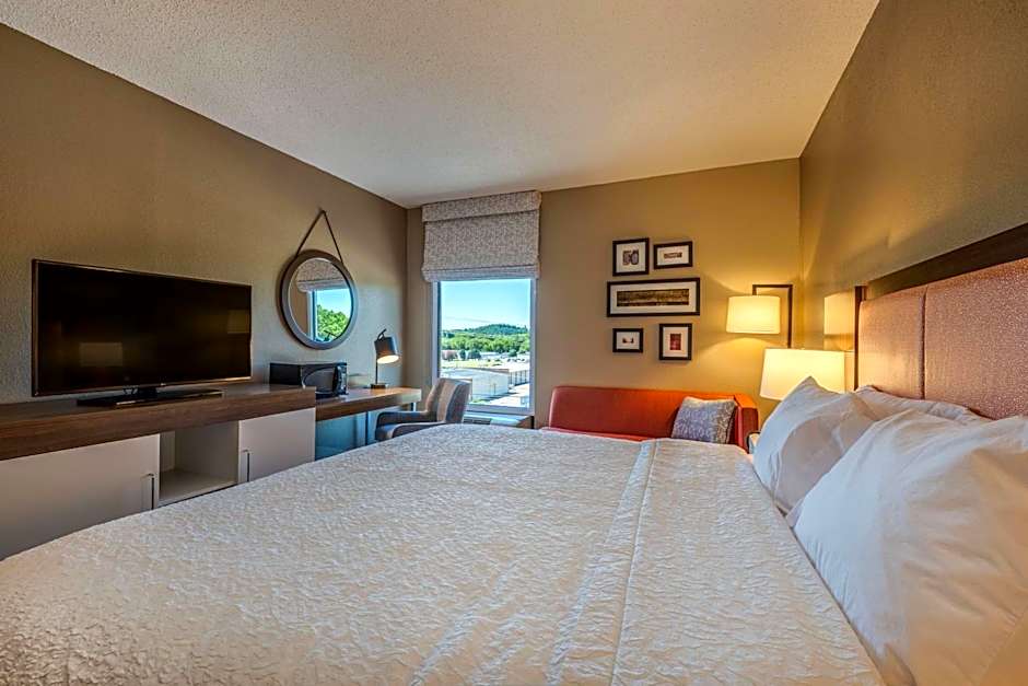 Sofa bed, 25-inch TV, large work desk, soft seating, free WiFi access Enjoy your stay in this non-smoking guest room with one clean and fresh Hampton bed® and a convenient sofa bed. Relax in the seating area and watch a movie or your favorite TV show on the TV with HD channels. Make yourself a coffee with the coffeemaker, and if you have work to do utilize the large work desk with a desk chair and free WiFi. The bathroom offers plush towels and a WaterPik showerhead and a curved shower rod, providing more space and light in the shower.