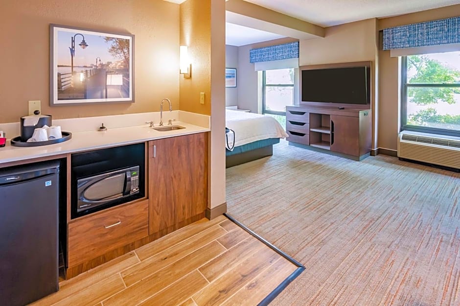 32-inch HDTV, sofa bed, work desk, microwave, refrigerator, free WiFi Enjoy extra space and comfort in this guest room which offers one king-sized clean and fresh Hampton bed®, plus a comfortable sofa bed to sleep an extra guest. Stay entertained with a variety of movies and HD channels on the 32-inch HDTV. Business amenities include a large work desk and free WiFi access. Refresh in the bathroom with a WaterPik showerhead and fluffy towels. This room also offers a microwave, refrigerator and coffeemaker to help you feel at home.