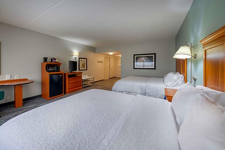 The types of rooms available at the Hampton Inn Wilmington University Area include King Studio with Sofa Bed - Non-Smoking, Queen Room with Two Queen Beds and Bath Tub - Disability/Hearing Accessible, Deluxe Queen Room with Two Queen Beds - Non-Smoking, Deluxe Queen Room with Two Queen Beds - Hearing Accessible - Non Smoking, Deluxe King Room - Non-Smoking, King Room Mobility/Hearing Accessible with Roll-In Shower/Non-Smoking, and King Suite. Smoking is not allowed in any of these rooms. Various room sizes and bed configurations are available to accommodate different numbers of adults and children.