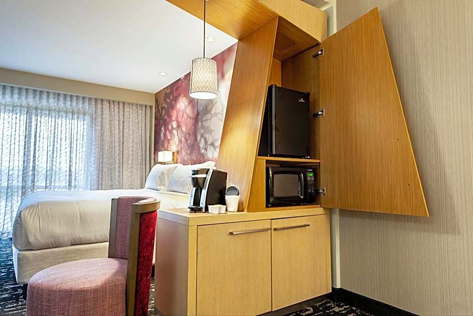 In terms of dining options, guests can choose to dine at the on-site restaurant, Courtyard Bistro, which offers a variety of American cuisines in a family-friendly and modern ambiance. Additionally, the hotel features Top of Fourth - Rooftop Lounge, a romantic rooftop lounge where guests can enjoy delicious American cuisine while taking in the stunning views.