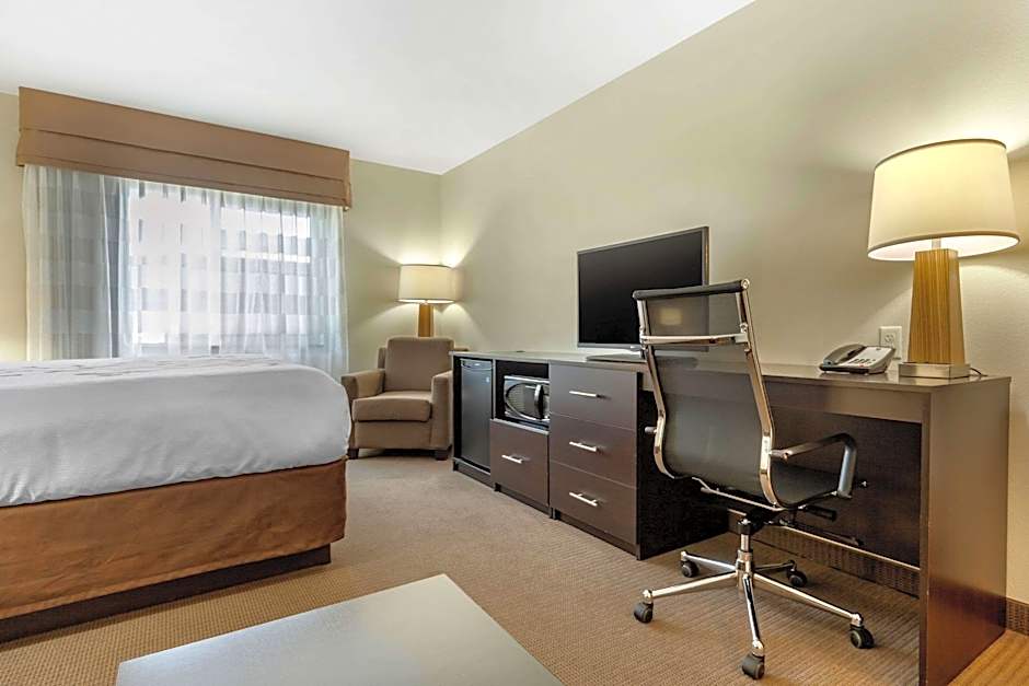 There are several types of rooms available at Sleep Inn & Suites Devils Lake. Room types include King Rooms, Suite with Two Queen Beds, and Queen Rooms with Two Queen Beds. Each room is non-smoking and has a size of 205 sqft. The King Rooms and the King Suite can accommodate 2 adults and 1 child, while the Suite with Two Queen Beds and the Queen Rooms with Two Queen Beds can accommodate 4 adults and 3 children.