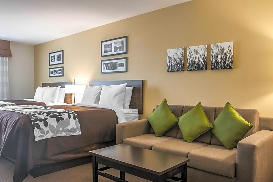 What types of rooms does Sleep Inn & Suites Devils Lake offer?