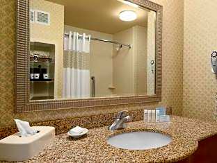 This hearing accessible, non-smoking room features one king-sized bed. The room also has a visual alarm and notification devices for the doorbell or door knock and incoming phone calls. The room features our clean and fresh Hampton bed, comfortable sofa bed, microwave, refrigerator, a HDTV, and easy to operate alarm clock/radio. In the bath you will enjoy a WaterPik showerhead and curved shower rod. The free WiFi will help you stay connected while on the road. If you prefer not to work at the desk, you can use the convenient lapdesk instead. You'll also enjoy the convenience of having a coffeemaker with tea service and iron/ironing board in your room. Any corresponding photo may not reflect the specific accessible room type or room feature.