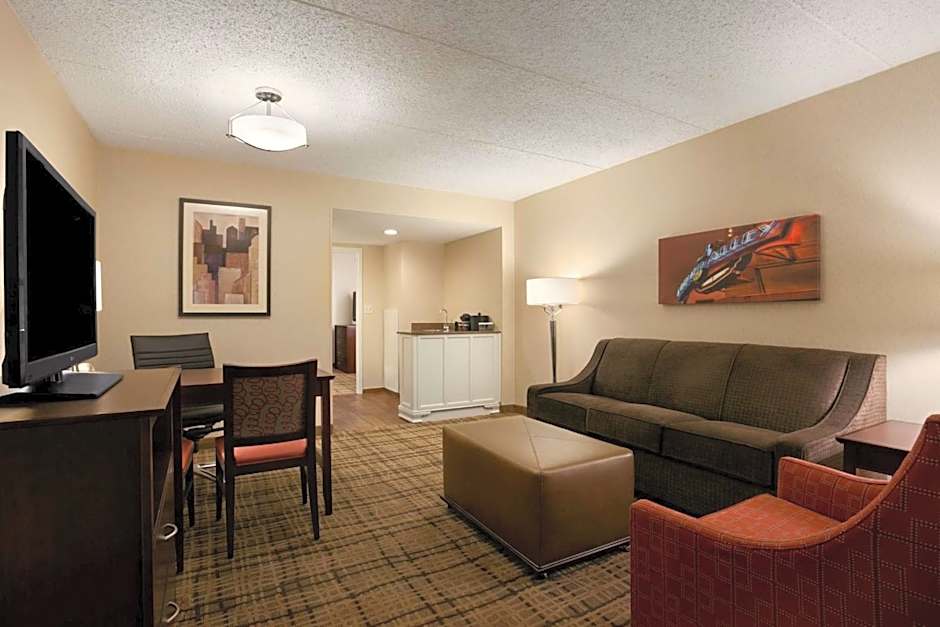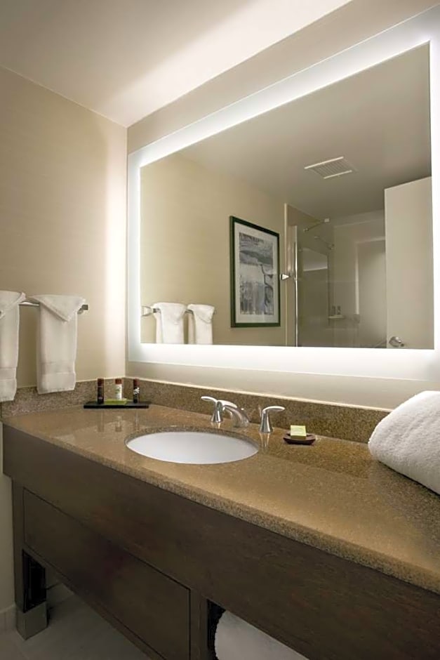 This mobility and hearing accessible standard suite features one king-sized bed and an accessible tub. The room also has a visual alarm, and notification devices for the doorbell or door knock and incoming telephone calls. Any corresponding photo may not reflect the specific accessible room type or room feature.
