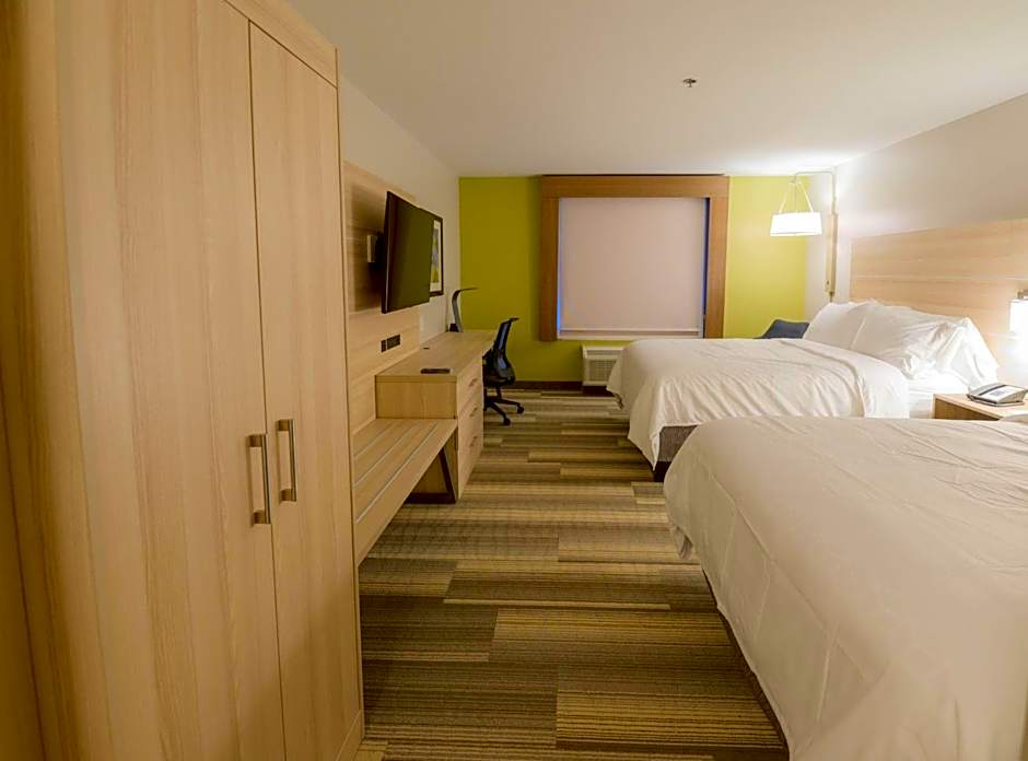 The Holiday Inn Express & Suites Dayton East - Beavercreek offers a variety of room types. These include Standard Queen Rooms with Two Queen Beds, Standard King Rooms with Accessible Roll-In Showers, Suites with Two Queen Beds, King Suites, and Standard King Rooms. The rooms range in size from 323 sqft to 409 sqft and can accommodate between 2 to 6 adults and 1 to 4 children. Smoking is not allowed in any of the rooms. The bed sizes vary, with options of Queen size beds and King size beds available.