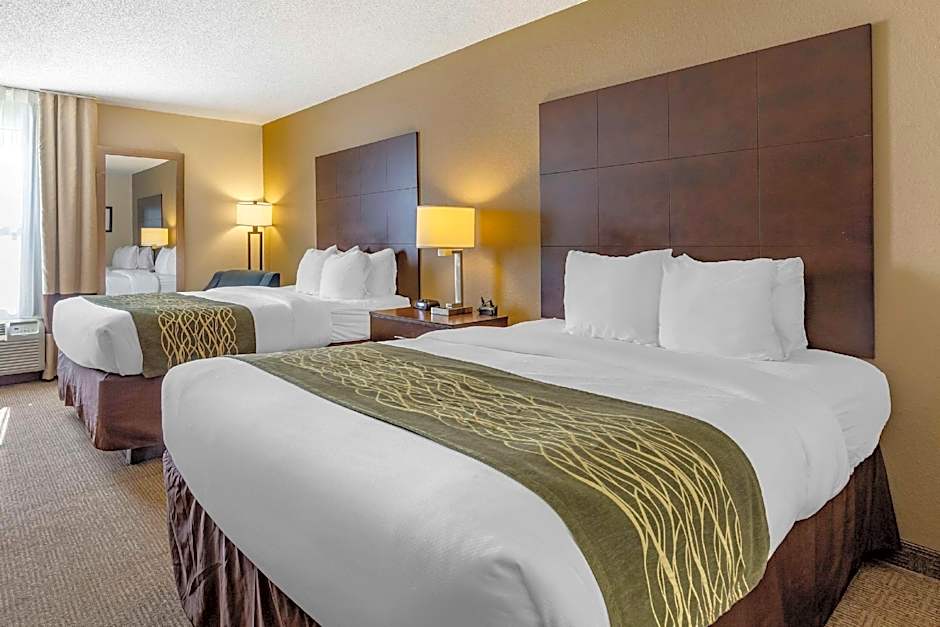 Comfort Inn offers a variety of room types including Queen Rooms with Two Queen Beds, King Rooms, and rooms with hot tubs. The rooms range in size from 248 sqft to 301 sqft, accommodating up to 4 adults and 3 children or 2 adults and 1 child. Smoking is not allowed in any of the rooms available at the hotel.
