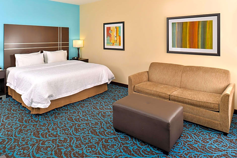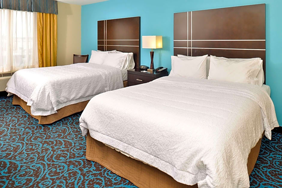The Hampton Inn by Hilton Dayton South offers queen rooms with two queen beds and king rooms with a sofa bed. The queen rooms accommodate 4 adults and 3 children, while the king rooms accommodate 3 adults and 2 children. All rooms are non-smoking and have a room size ranging from 355 to 398 sqft.
