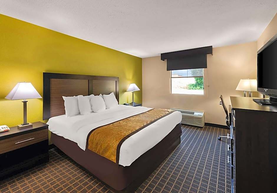 Got there and waited like 10 minutes at front desk before anyone showed up to help us. Booked a room with a queen size bed and got two bed, maybe full size. Wasn't a queen size bed but room was by front door so it was ok. Room was very clean, but mattresses were not very comfortable. Put drinks in the fridge to keep cold just to find out in the morning the fridge wasn't even plugged in. Everything looked brand new like the had just finished a remodel. Would stay again if I was in the area. Breakfast was good also, biscuits and gravy, pancakes and eggs. 8 out of 10.