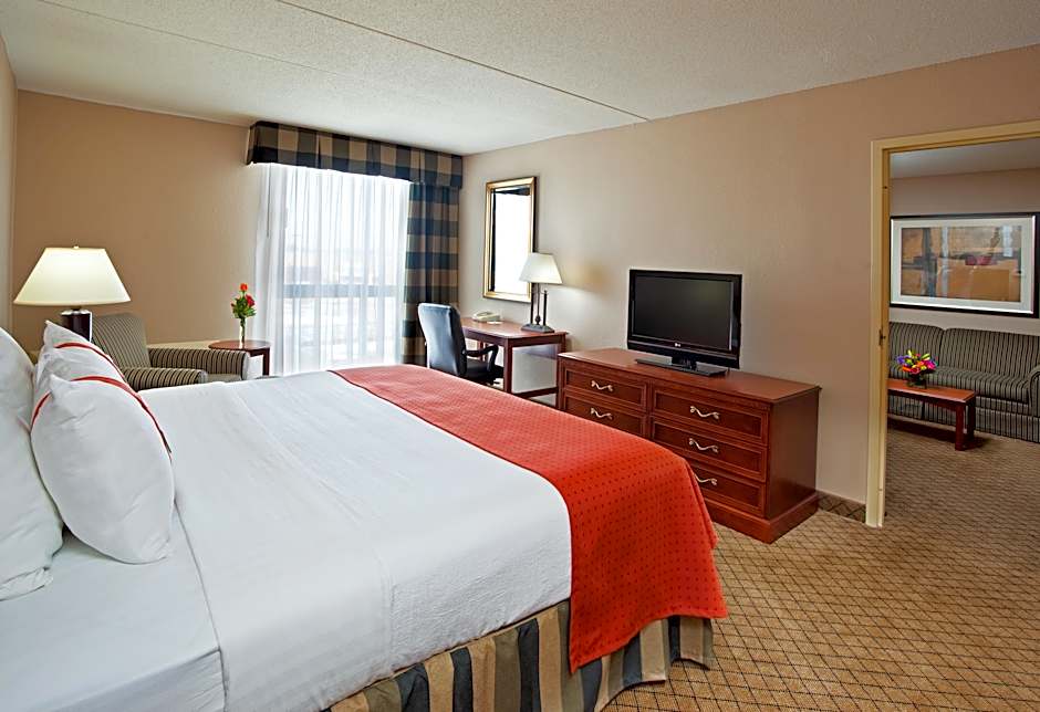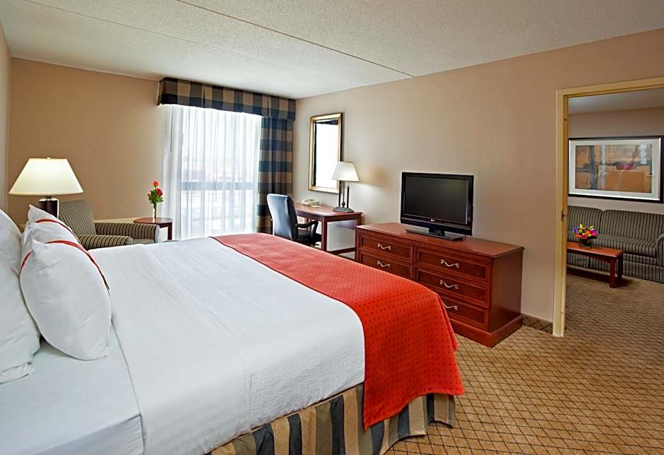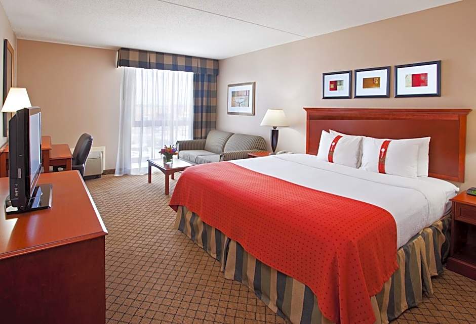 The Holiday Inn Cincinnati-Eastgate offers a variety of room types including standard rooms, suites, and executive rooms. Room occupancy ranges from single to family-sized. Rooms are non-smoking and feature varying bed sizes from queen to king, with some offering sofa beds.