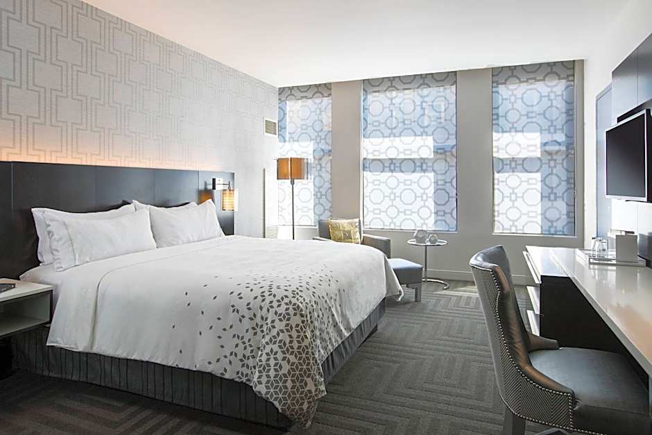 The Renaissance Cincinnati Downtown Hotel offers King or Double Rooms that accommodate up to 3 adults and 2 children. These rooms do not allow smoking and feature either a King size bed or Double beds, with a room size of 366 sqft.
