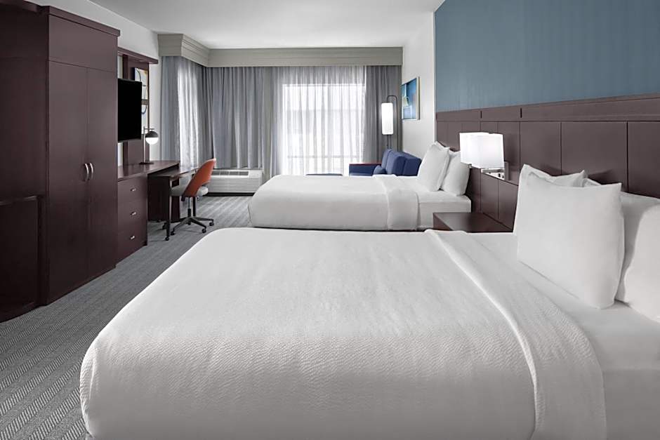 The Courtyard Cleveland University Circle hotel offers a variety of room types including Queen Rooms with Two Queen Beds, King Rooms with Sofa Beds, and One-Bedroom King Suites with Sofa Beds. Smoking is not allowed in any of the rooms. The rooms range in size from 312 sqft to 592 sqft and can accommodate between 3 and 5 adults, with children also allowed.