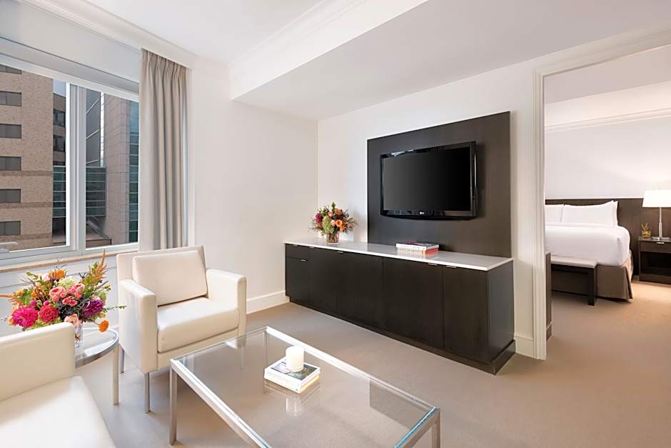 With living room 690 sq ft with wired and wireless high speed internet 42 inch LCD television marble bath with separate bath and shower agraria bath amenities bathrobe iPod clock with mp3 player DVD player coffee maker and in room safe half bath in living room.