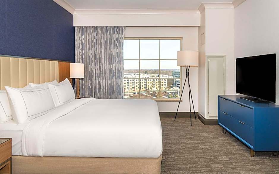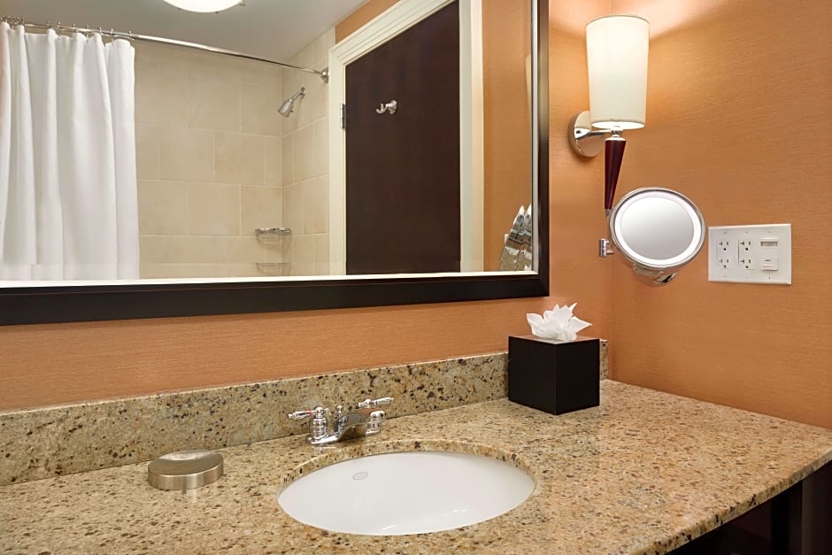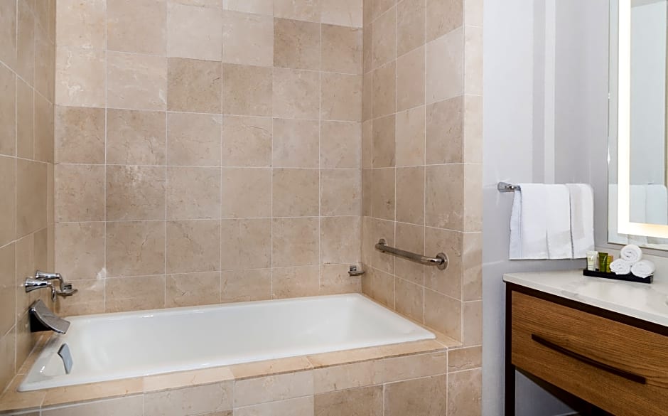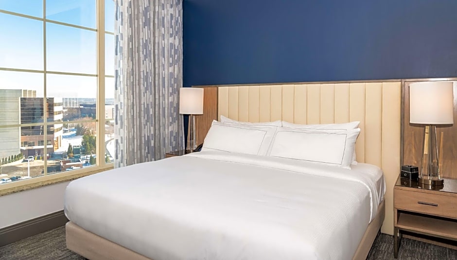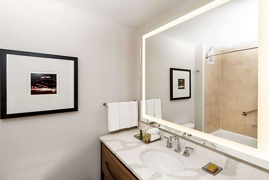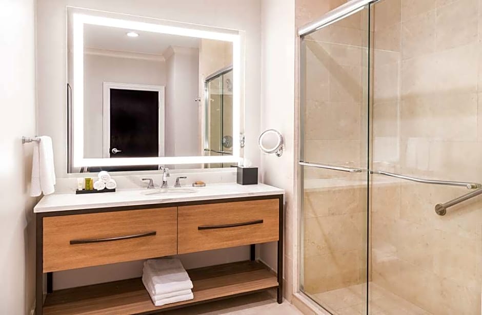 Concierge Lounge access (Mon-Fri only), Hilton Serenity Bed, complimentary WiFi, 42-inch TV, shower & bath. Spread out in this one bedroom suite, with king-sized bed, sofa bed, bath and separate shower. Enjoy access to the Concierge Lounge, Monday-Friday. Get some work done at the desk using complimentary WiFi, or find an on-demand movie to watch on the 42-inch TV. Settle down for a peaceful night's sleep in the Hilton Serenity Bed.