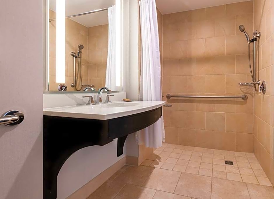 1 King Bed Mobility/Hearing Accessible Tub Fitness Room With Chin Up Bar.