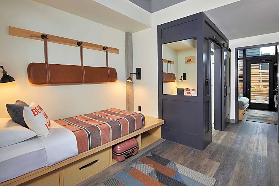 The Moxy is one of the coolest places I've ever stayed. In fact, my girlfriend specifically said, "I think I'm too old for this hotel." Friends, the BAR and the CHECK-IN are the same place! There are games around the bar area, so it feels more lounge-y, with floor-to-ceiling windows and draperies. The staff was absolutely incredible. The rooms are a little small but not uninhabitable, and they don't sacrifice space where it matters (like, the bathroom is plenty spacious, the bed is great, the TV is great).