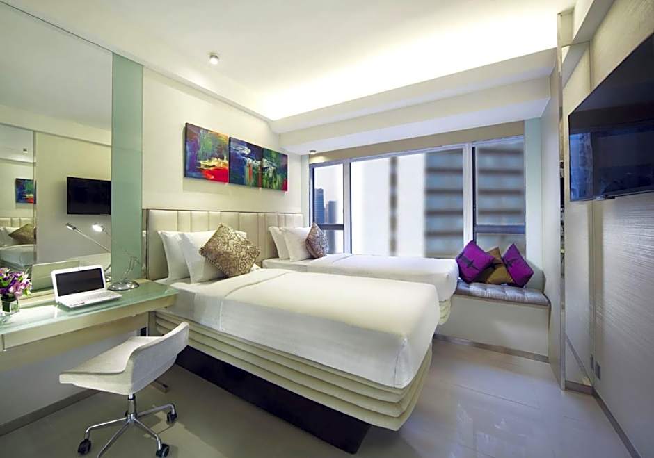 Located on the higher floors, iPlus Premier offers airy view of Victoria Harbor or stunning peak landscape through large windows. The contemporarily furnished iPlus Premier offers 2 twin beds and are about 17 square yards in size. Guest can enjoy free access to Sweat Zone for fitness facilities and 24 hours complimentary tea and coffee service at iLounge which includes an outdoor area with natural vertical garden.