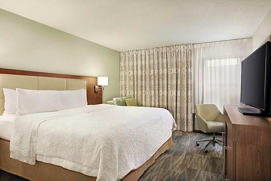 Sofa bed, desk, TV, free WiFi Relax in this king room with a clean and fresh Hampton bed®. Sink into the sofa bed and watch movies on the HDTV. Surf the web with free WiFi. Catch up with work at the large desk with ergonomic chair. Refresh your senses in the bathroom, complete with a shower and plush towels. Enjoy the convenience of having a coffeemaker in the room.