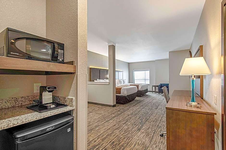 The Comfort Suites Grove City - Columbus South hotel offers a variety of suite options. The rooms include Queen Suites with Two Queen Beds, King Suites with Sofa Bed, King Suites with Roll-In Shower, and King Suites. All the rooms are non-smoking and vary in size from 301 sqft to 355 sqft. The Queen Suites can accommodate up to 4 adults and 3 children, while the King Suites can accommodate up to 3 adults and 2 children. The bed options include Queen size beds and King size beds, with some rooms also offering a sofa bed.
