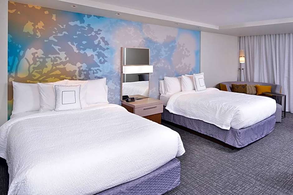 The hotel offers a Queen Studio with Two Queen Beds and Sofa Bed and a One-Bedroom King Suite with Sofa Bed, both accommodating larger groups with up to 6 adults and 5 children and featuring a room size of 388 sqft. There is also a Larger King Room and Deluxe Queen Room with Two Queen Beds, both with a room size of 452 sqft, accommodating up to 4 adults and 3 children. Additionally, there is a Standard King Room with Sofa Bed, accommodating up to 3 adults and 2 children, and a Queen Room with Two Queen Beds, accommodating up to 4 adults and 3 children. All rooms do not allow smoking.