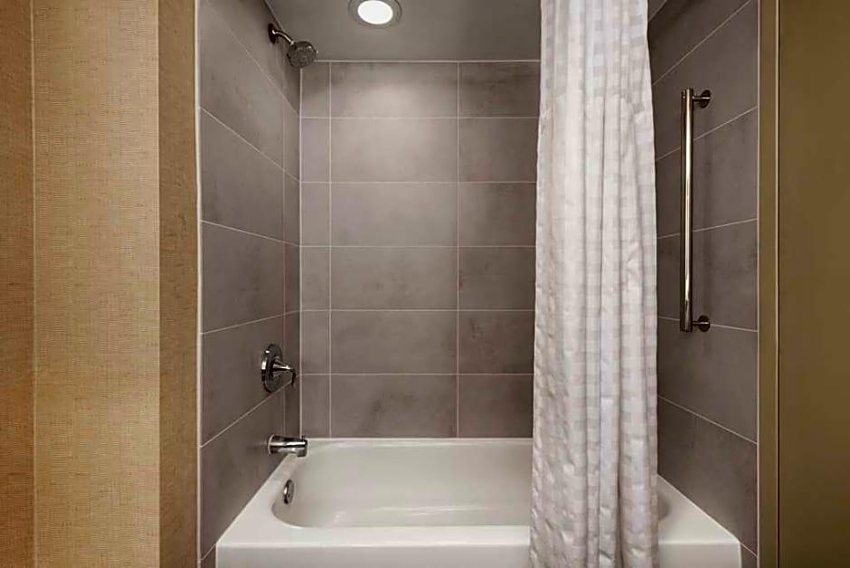 This mobility accessible standard suite features one king-sized bed, and a roll-in shower. Any corresponding photo may not reflect the specific accessible room type or room feature.