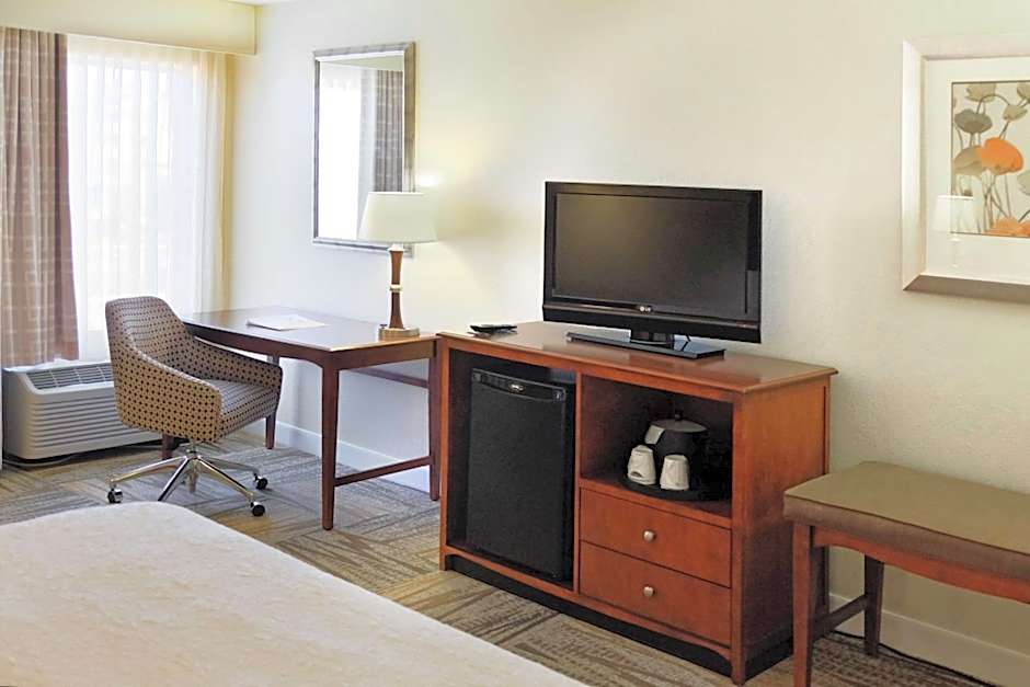 Refrigerator, sofa bed, work area, free WiFi, 32-inch HDTV, tea/coffeemaker Have a relaxing stay in this king guest room that features our clean and fresh Hampton bed®. Unwind on a plush sofa bed while watching the 32-inch HDTV. Stay productive at the spacious desk and keep in touch with free WiFi. The room also includes a refrigerator and a tea/coffeemaker to help you feel at home. In the bathroom you'll enjoy fluffy towels, a WaterPik showerhead and curved shower rod for added space and light.