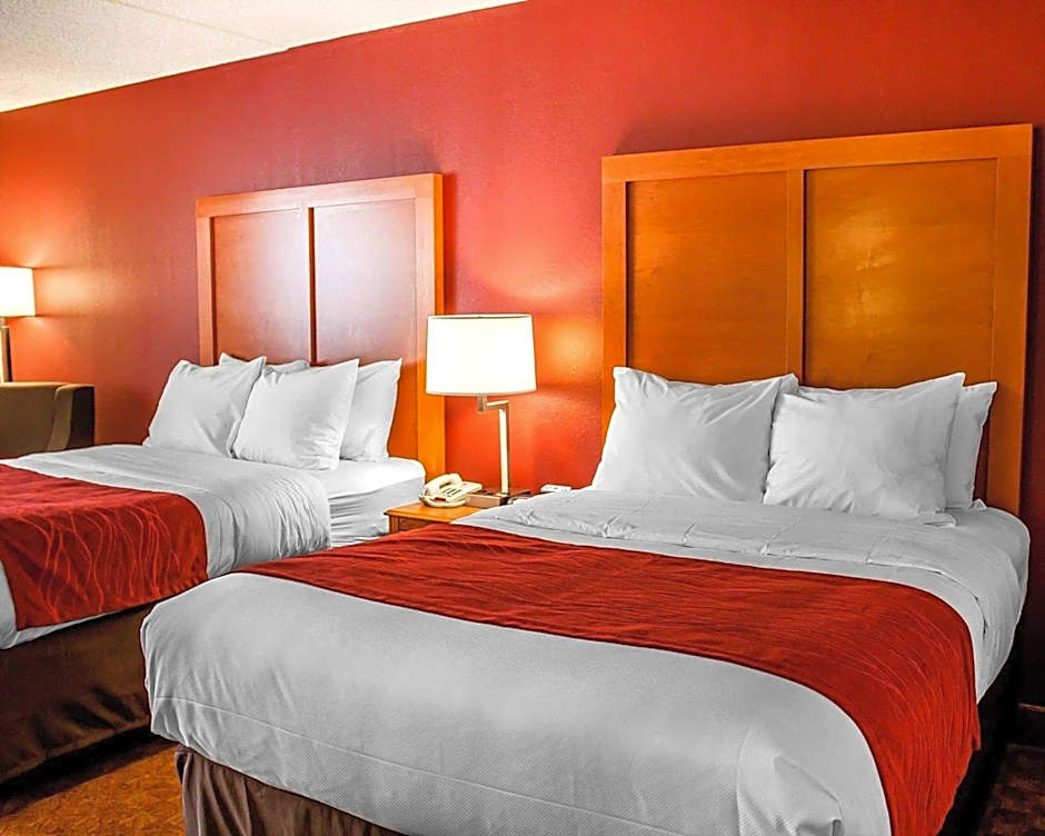 The Quality Inn hotel offers a variety of rooms including suites with two double beds, queen rooms, king rooms, double rooms with two double beds, double rooms with two double beds and accessibility features, and standard queen rooms with a hot tub. All rooms are non-smoking and have a room size of 484 sqft, except for the suite which is 958 sqft. The rooms can accommodate between 2-4 adults and 1-3 children, depending on the room type. The bed sizes range from queen size to double beds.