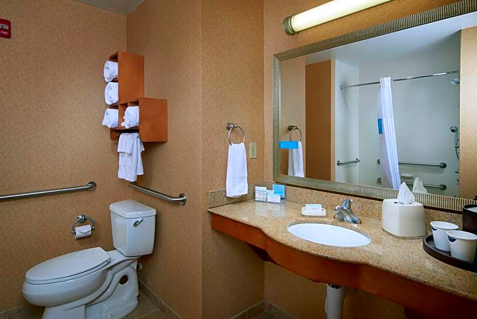 Any corresponding photo may not reflect the specific accessible room type or room feature. This mobility accessible, nonsmoking room features one king sized bed , and an accessible bath tub. The room features comfortable soft seating, a HDTV, and easy to operate alarm clock/radio. The free high speed internet access will help you stay connected while on the road. If you prefer not to work at the desk, you can use the convenient lapdesk instead. You'll also enjoy the convenience of having a coffee maker with tea service and iron/ironing board in your room.