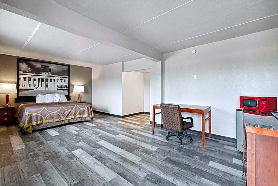 A range of room types includes suites, studios, king rooms, and standard rooms, with options such as a suite featuring a king bed, a studio suite, or an efficiency unit with a king bed, sofa bed, and kitchenette. Some units offer a sofa bed and kitchenette, ensuring space for families and groups while keeping the stay convenient and comfortable.