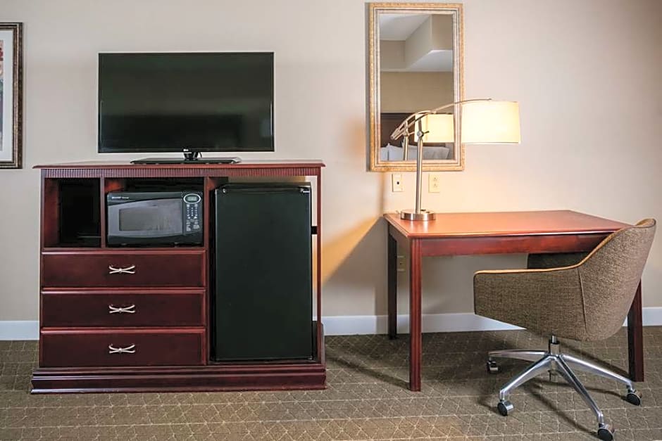 This mobility accessible, non-smoking suite features two queen-sized beds, and an accessible roll-in shower. The room features include a microwave, refrigerator, wet bar, comfortable soft seating, a HDTV, and easy to operate alarm clock/radio. The free WiFi will help you stay connected while on the road. If you prefer not to work at the desk, you can use the convenient lapdesk instead. You'll also enjoy the convenience of having a coffeemaker with tea service and iron/ironing board in your room. Any corresponding photo may not reflect the specific accessible room type or room feature.