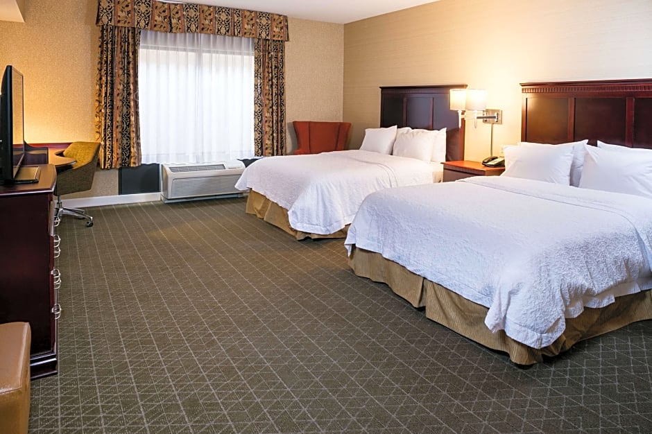 The Hampton Inn & Suites Toledo-Perrysburg offers a variety of room types to accommodate different needs. These include King Studios with Two King Beds and King Suites with Two King Beds, both of which have a room size of around 280 to 301 sqft and accommodate larger groups of adults and children. There are also King Rooms with Sofa Bed, King Rooms without Sofa Bed, Queen Rooms, Queen Studios with Two Queen Beds, and King Studios with Sofa Bed options available, each with their own room size and occupancy capacities. All rooms are non-smoking.