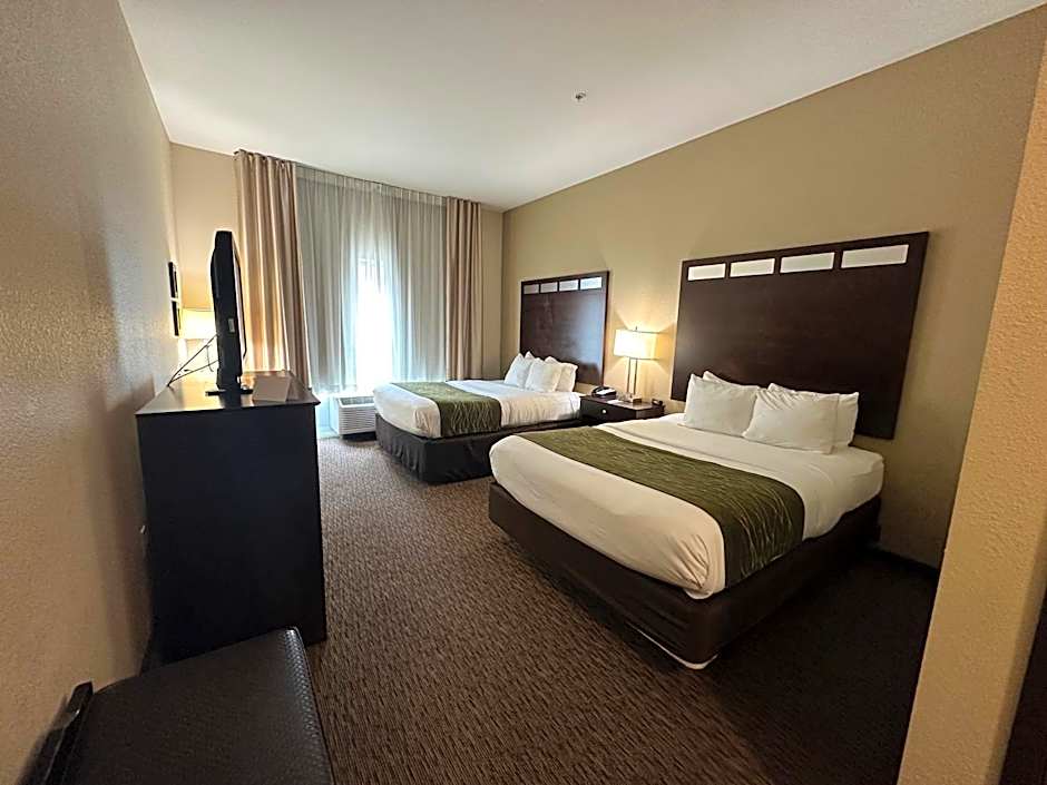 The Comfort Inn Saint Clairsville offers a variety of room types including King Rooms, Queen Rooms with Two Queen Beds, and Standard King Rooms. All rooms are non-smoking and range in size from 301 sqft to 334 sqft. The rooms can accommodate 2 adults and 1 child, or 4 adults and 3 children, depending on the room type. Beds are either King size or Queen size.