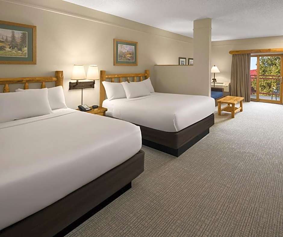 The hotel has several restaurants on site including Gitchigoomie Grill, Dunkin Donuts, Buckets Incredible Craveables, and Hungry as a Wolf Pizza. Each offers American cuisine and has a family-friendly ambiance.