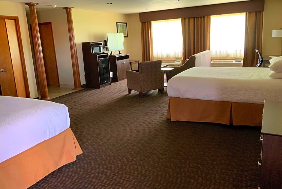 A range of room options provides choices for different trip needs, including Executive, King; Deluxe Suite; Suite with Queen; and Studio configurations. Bed layouts vary, with options like a king or two queens, plus sofa beds in select layouts. Some suites feature a jetted tub, adding a touch of luxury to a comfortable home base.
