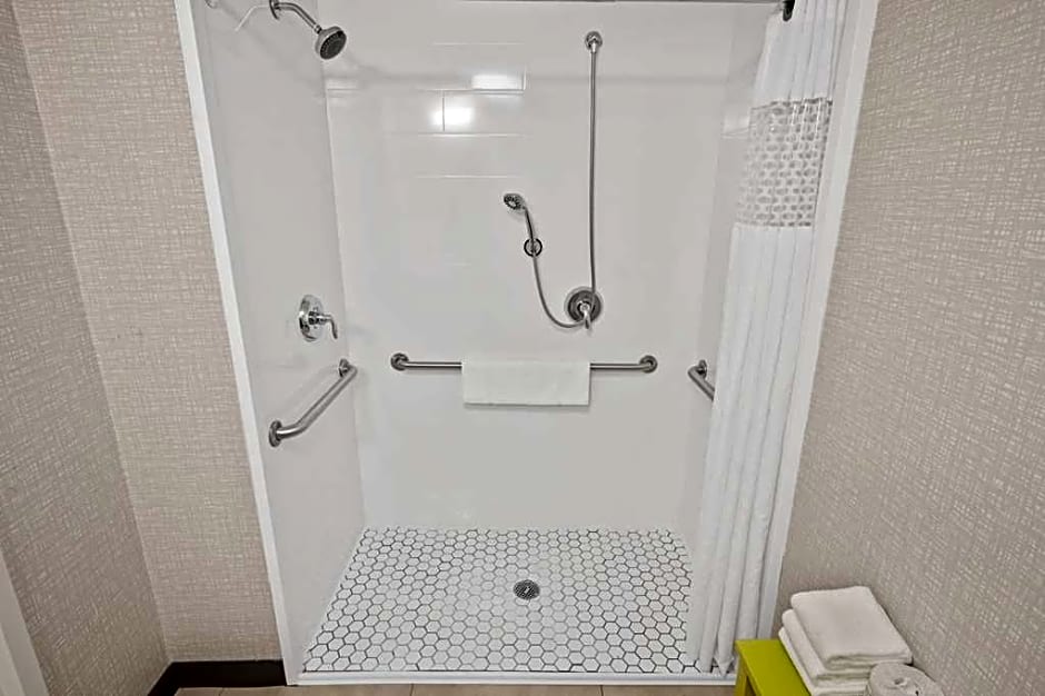 Any corresponding photo may not reflect the specific accessible room type or room feature. This mobility and hearing accessible, nonsmoking room features one queen sized bed , and an accessible roll-in shower. The room also has a visual alarm and notification devices for the doorbell or door knock and incoming phone calls. The room features comfortable soft seating, a HDTV, and easy to operate alarm clock/radio. The free high speed internet access will help you stay connected while on the road. If you prefer not to work at the desk, you can use the convenient lapdesk instead. You'll also enjoy the convenience of having a coffee maker with tea service and iron/ironing board in your room.