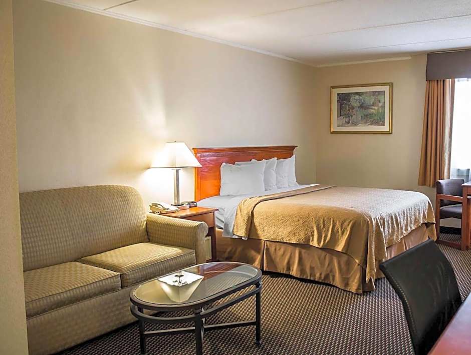 The hotel was very old and outdated, and the halls and elevators very dingy with dirty carpeting. The elevators hadn't been vacuumed or carpet shampooed for a very long time. We felt that the hotel does not meet the standards we are used to from the Baymont/Wyndham name. We walked past the breakfast room 30 minutes before closing and the room was dark with no sign of having served anything. No coffee, nothing.