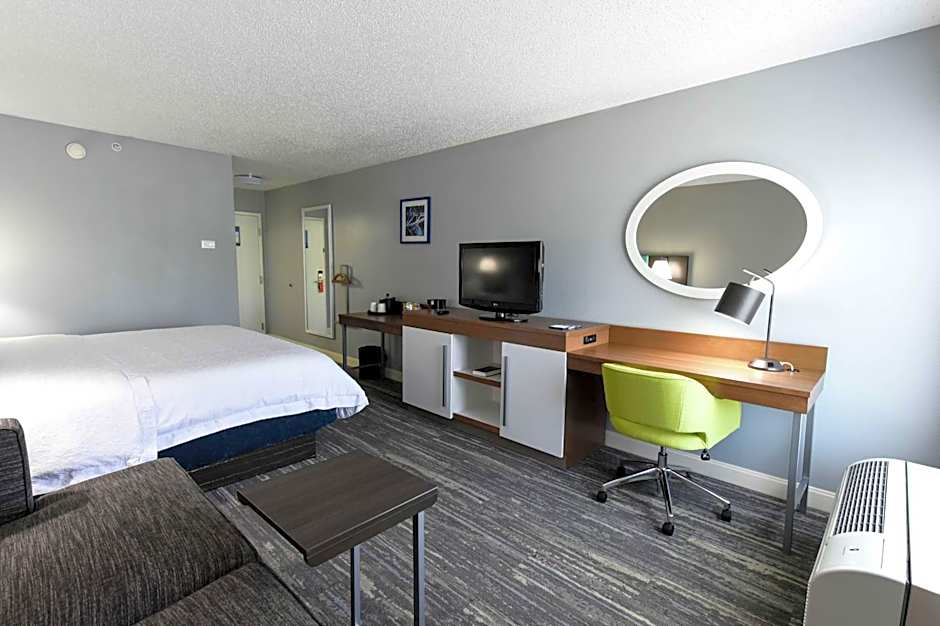 With a variety of room types available, you can choose the one that best suits your needs. You can opt for a standard room with hearing accessibility features or choose a room with a king-size bed and a sofa bed. The rooms are tastefully decorated and non-smoking, ensuring a pleasant and clean environment for your stay. Whether you're traveling alone or with a group, you'll find a comfortable and spacious room to accommodate your needs. So, you can rest assured knowing that your stay at the Hampton Inn Youngstown-North will be comfortable and memorable.