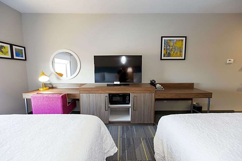 The Hampton Inn Mustang offers a variety of room types including Queen Rooms with Two Queen Beds, King Rooms, and King Rooms with Sofa Beds. All rooms are non-smoking and come in a size of 301 sqft. The Queen Rooms with Two Queen Beds and King Rooms accommodate 4 adults and 3 children, while the King Rooms with Sofa Beds accommodate the same number. Beds available in the rooms include double beds, queen size beds, and king size beds.