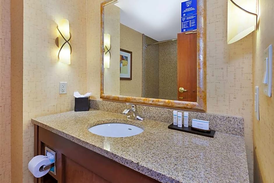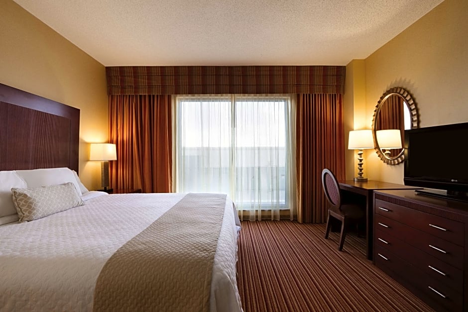 This mobility accessible Hospitality suite features one king-sized bed, and a roll-in shower. Features two living area suites with 2 fold out sofa beds and large dining area. Complimentary cooked-to-order breakfast and Evening Reception. This mobility and hearing accessible suite features one king-sized bed, and a roll-in shower. The room also has a visual alarm, and notification devices for the doorbell or door knock and incoming telephone calls. Maximum occupancy for this suite is 4 guests. Any corresponding photo may not reflect the specific accessible room type or room feature.