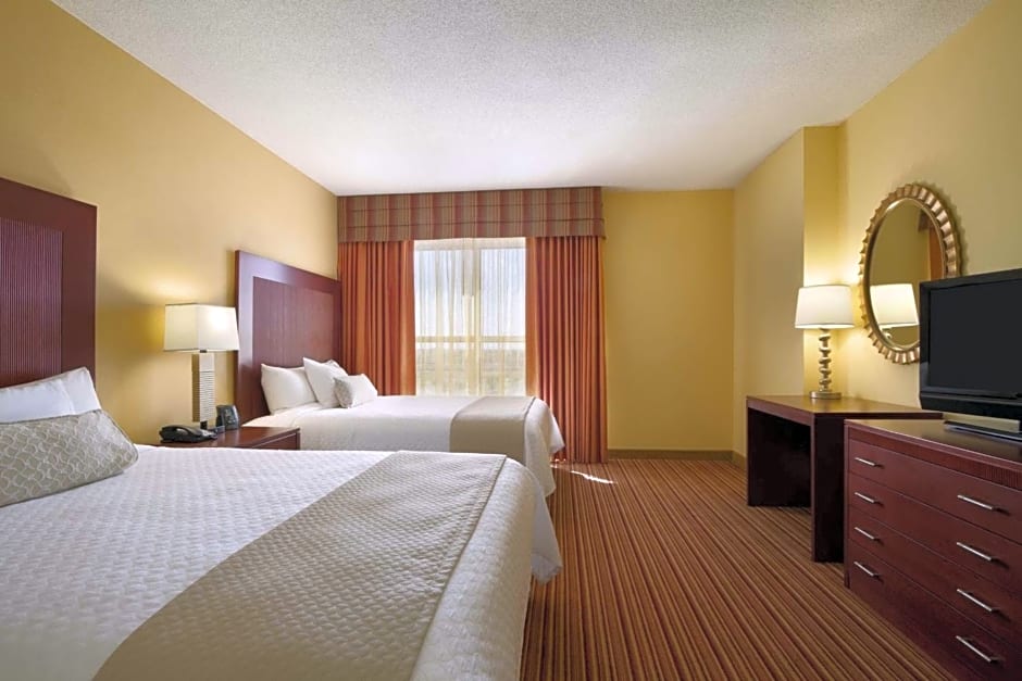 432 sq. ft. room with sofa bed, desk with ergonomic chair, armchair, two 33-inch flat-screen TVs. Relax in this spacious two-room suite, featuring two queen-sized beds and a separate living room with sofa bed. Get some work done in comfort at the desk using WiFi. Prepare a meal with a microwave and mini-refrigerator. Other amenities in this suite include blackout curtains, bath products and an alarm clock radio. Sleeps up to 6 adults.