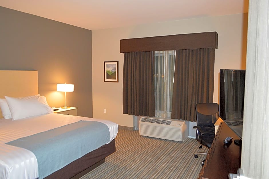 The room was clean and comfortable. There was a coffee maker, refrigerator, microwave, iron and hairdryer in the room. The free morning breakfast had scrambled eggs, sausages, biscuits & gravy, waffles and oatmeal. There was a yogurt bar, cereal station, assorted individually wrapped pastries, juice, coffee and some fresh fruit. The hotel staff was very friendly, competent and helpful.