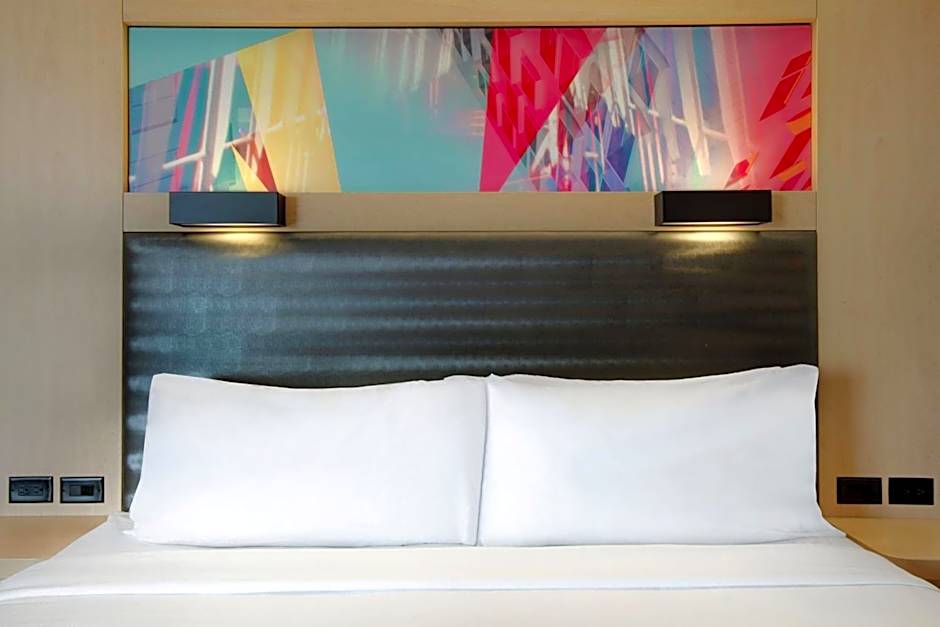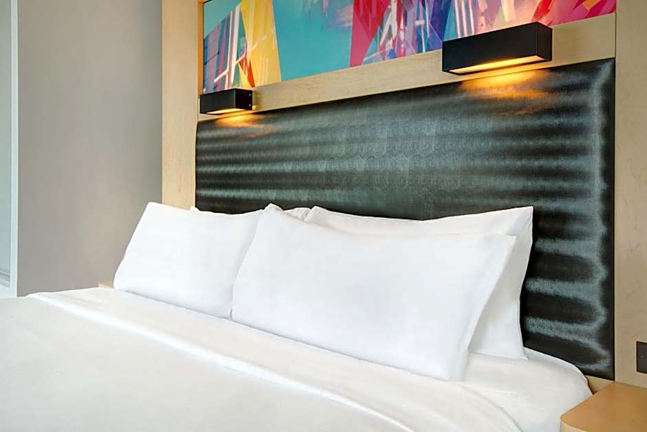 The Aloft Oklahoma City Downtown - Bricktown hotel offers guest rooms with one king-sized bed, junior suites with one king-sized bed and a sofa bed, and guest rooms with two queen-sized beds. None of the rooms allow smoking and all can accommodate up to two adults and one child. The sizes of the rooms range from 280 sqft to 775 sqft.