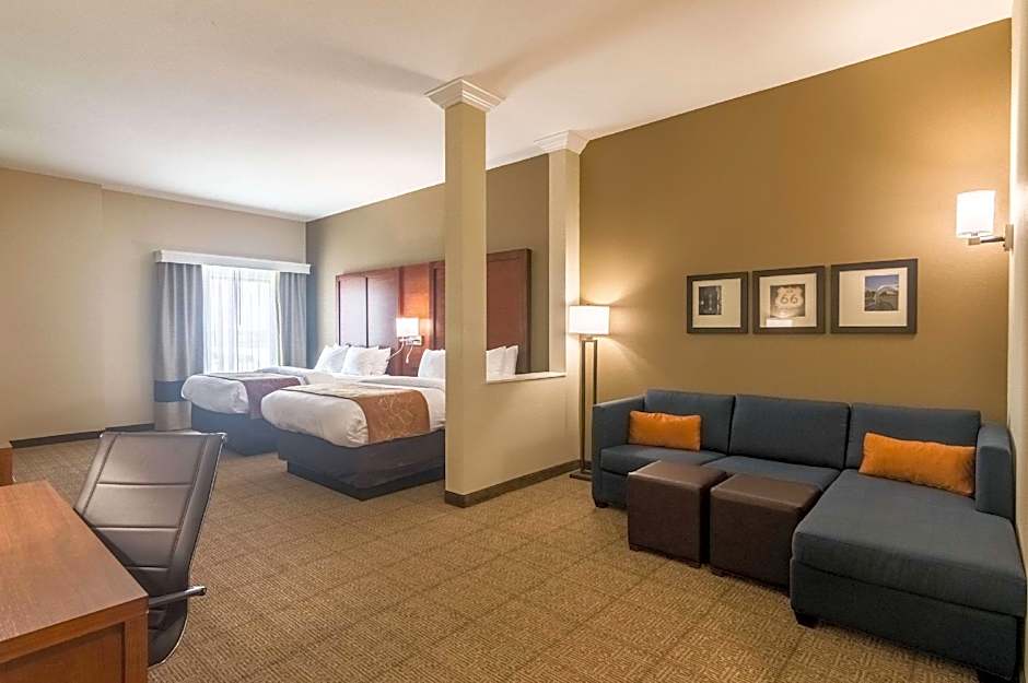 The Comfort Suites Meridian and I-40 offers a variety of rooms including King Suites, Queen Suites with Two Queen Beds, and a Queen Room with Two Queen Beds - Disability Access. All rooms are non-smoking and have the same room size of 355 sqft. The King Suites can accommodate 2 adults and 1 child, while the Queen Suites with Two Queen Beds and the Queen Room with Two Queen Beds - Disability Access can accommodate 4 adults and 3 children. The King Suites have 1 King size bed, while the other rooms have 2 Queen size beds.