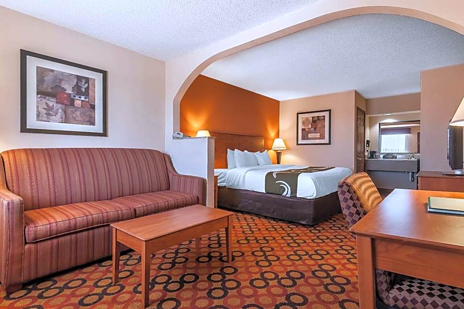 The Quality Inn & Suites Owasso US-169 offers a variety of room types. These include a Queen Room with Two Queen Beds that can accommodate 4 adults and 3 children, a King Suite with a size of 517 sqft that can accommodate 2 adults and 1 child, and a King Room with a size of 334 sqft that can accommodate 3 adults and 2 children. All rooms are non-smoking.