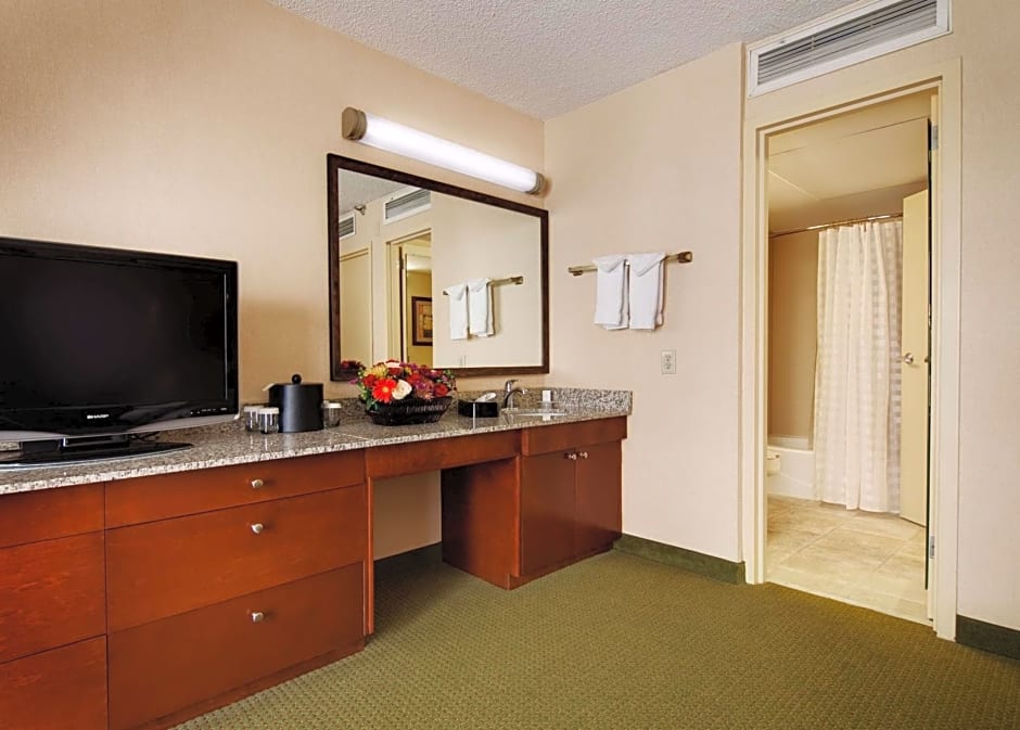 Separate living room, complimentary WiFi, two TVs, sofa bed, refrigerator, microwave Relax in comfort in this two-room suite. Unwind watching TV, in separate the living area or host a meeting at the convenient activity table. The bedroom features a king-sized bed, a second flat-screen TV and an alarm clock radio with MP3 connection. This suite includes a range of features to make you feel at home, including a microwave, refrigerator, and a granite wet bar. A sofa bed provides extra sleeping space. Stay up-to-date with complimentary WiFi.