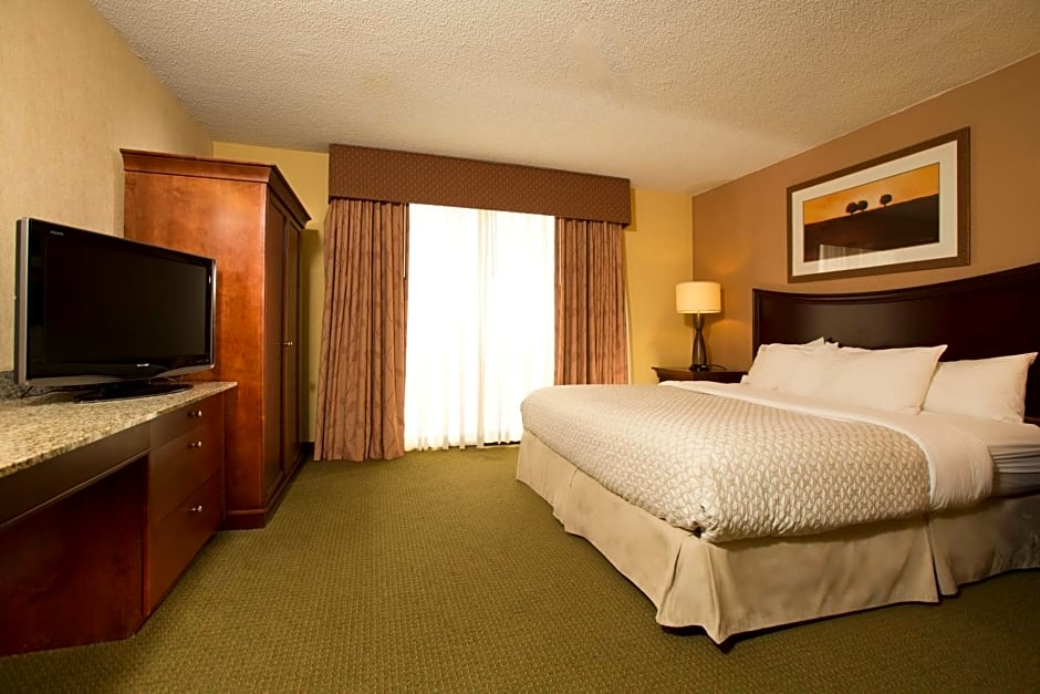 This mobility accessible standard suite features one king-sized bed, and a roll-in shower. Any corresponding photo may not reflect the specific accessible room type or room feature.